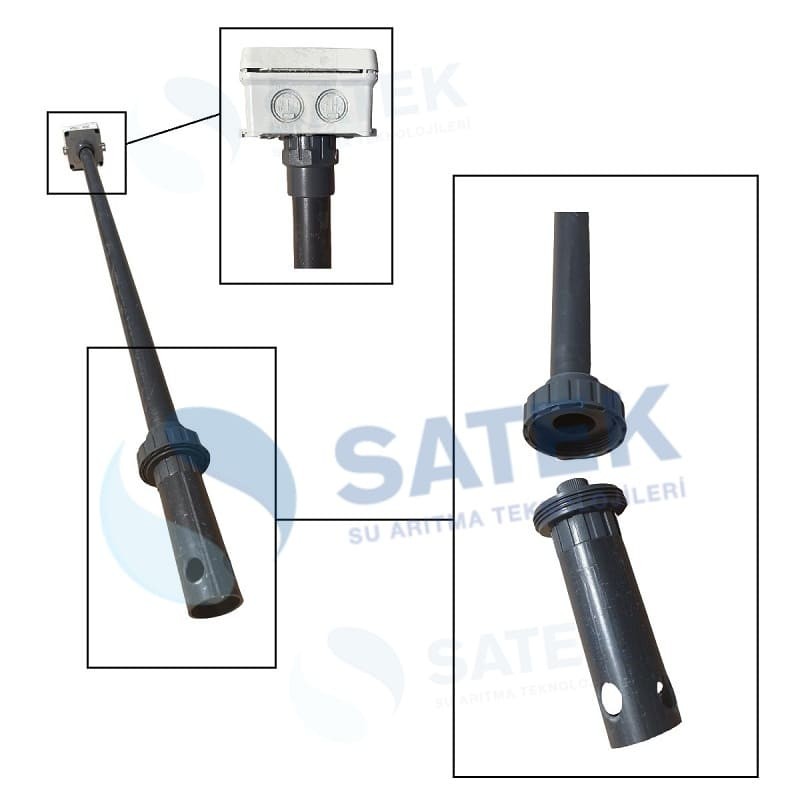 Depo içinden pH ve klor ölçümü; probun sadece ölçüm yapan uç kısmı sıvı ile temas eder, kablo ve diğer kısımlar sıvı ile temas etmez.