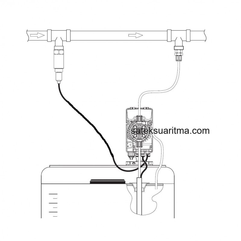 | Montaj Kiti | PVDF-T emme çekvalfi, PVDF-T enjeksiyon valfi, PVC emiş hortumu (2m) , PE basma hortumu (2 m), Duvara montaj aparatı |