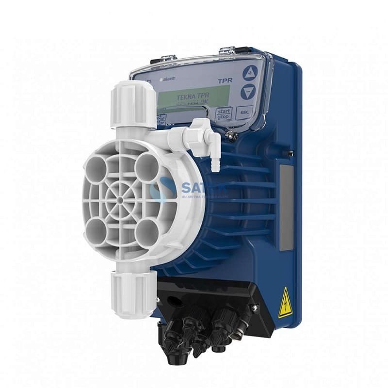 Seko Tekna Evo TPR803NHH0000 Dozaj Pompası Dozaj debisi: 5 bar-20 l/h Dozaj kontrolü: pH/ORP/Redox kontrollü oransal dozaj, dijital kontrol Ölçüm aralığı: pH: 0-14, Redox: ±1,500 Prob bağlantısı: BNC Akım çıkışı: 4-20 mA Pompa kafası: PVDF Conta: FPM Gövde: Fiberglas ile güçlendirilmiş PP, koruma derecesi IP65 Güç beslemesi: 100÷240 Vac 50/60 Hz...